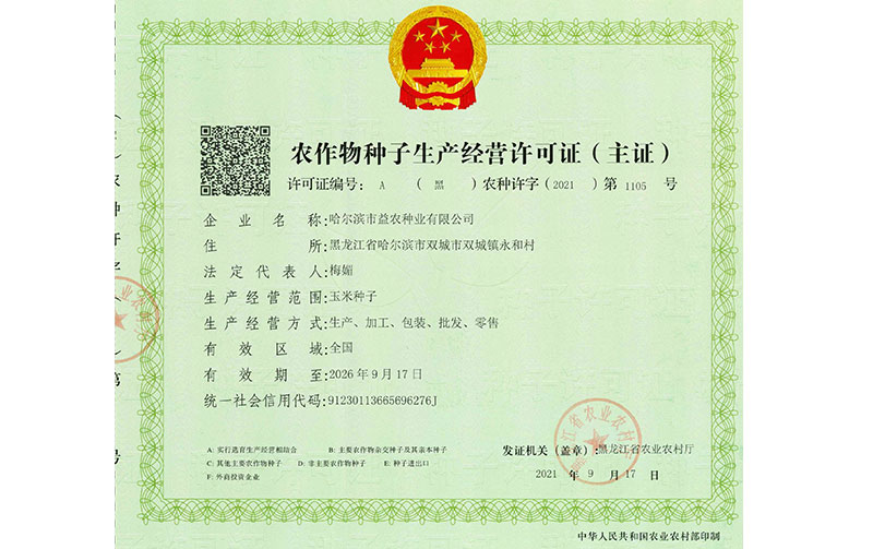 农作物种子生产谋划允许证(主证)